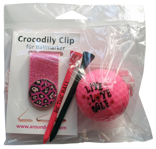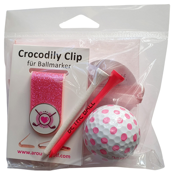 Die beliebten Crocodily-Clips mit Ballmarker werden mit einem Navika-Golfball, zwei Holz-Tees und Organzabeutel zum attraktiven Geschenktset. Lieferung im Headerbeutel mit Eurolochung.
