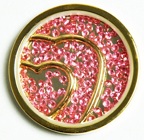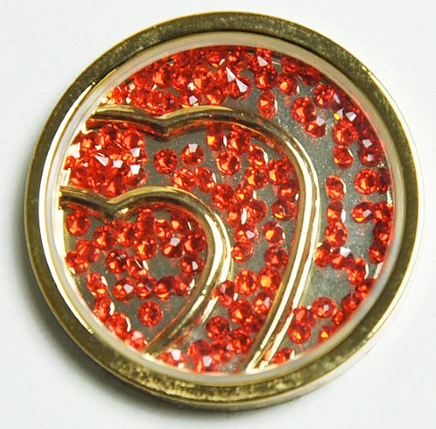 Edle silber- bzw. goldbeschichtete Ballmarker-Medaillons sind mit feingeschliffenen und polierten Kristallen befüllt (pat. pend.).