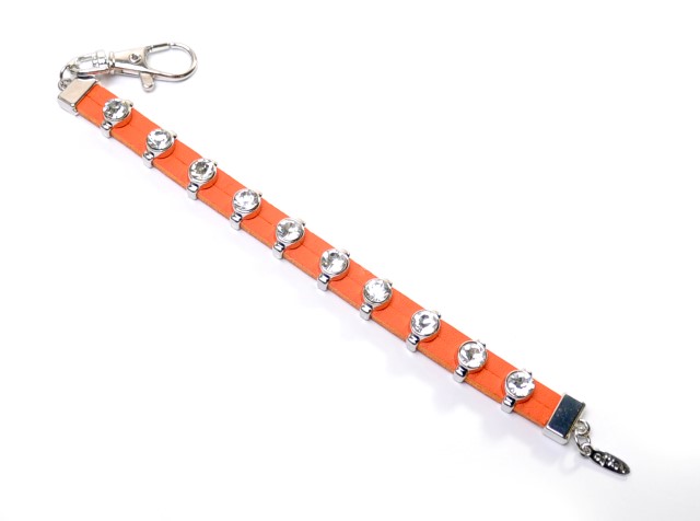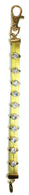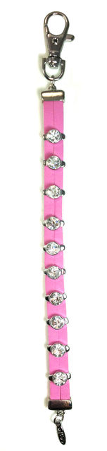 Elegant gefaßte Kristallelemente laufen auf dem zierlichen, vierfach geteilten Lederband. Elemente und Karabinerhaken sind golf- oder silberfarben. Diese Zählkette ist modisch gestylt auch als Armband zu tragen.