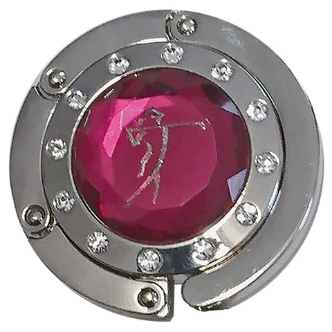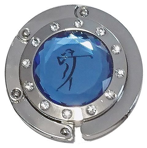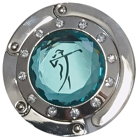 Die Strass-Lünette umrahmt einen edel geschliffenen Kristallstein mit Golferin-Gravur.