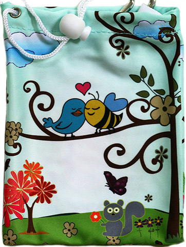 Zauberhafte Tee-Bags aus weicher Microfaser, ca. 9 x 14 cm, mit Zugband/Stopper-Verschluß und Karabinerhaken, inklusive