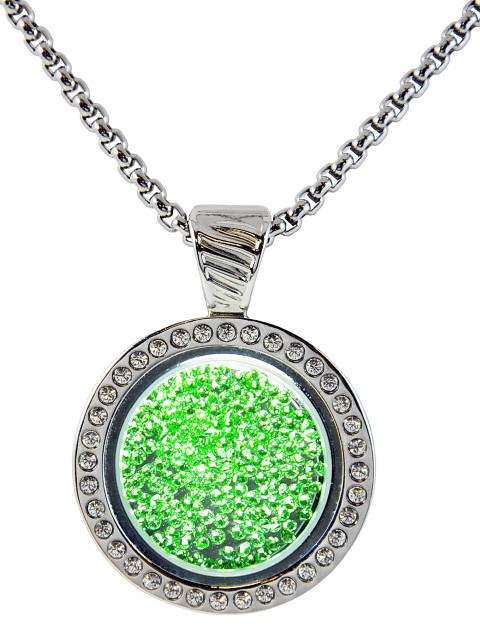 MN880 "Chameleon": Edle Halskette aus nickel- und bleifreiem Metall. Die Lünette des Magnetanhängers ist mit 36 farblosen Kristallen verziert. Passend für Ballmarker bis Ø 25 mm.