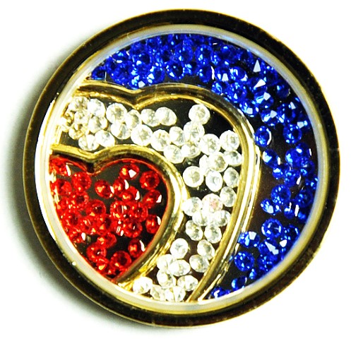Edle silber- bzw. goldbeschichtete Ballmarker-Medaillons sind mit feingeschliffenen und polierten Kristallen befüllt (pat. pend.).