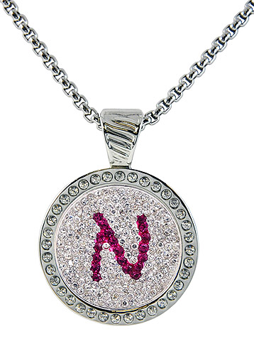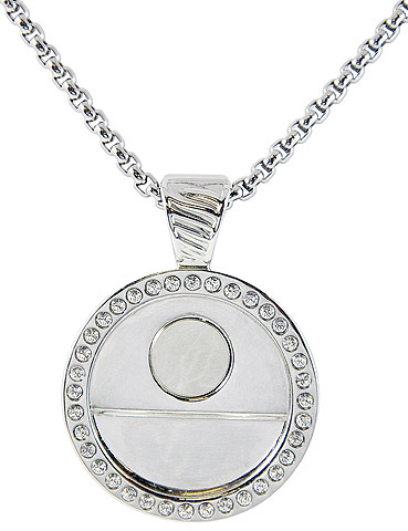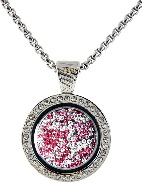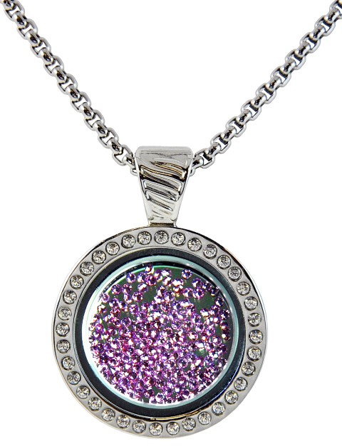 MN880 "Chameleon": Edle Halskette aus nickel- und bleifreiem Metall. Die Lünette des Magnetanhängers ist mit 36 farblosen Kristallen verziert. Passend für Ballmarker bis Ø 25 mm.