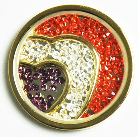 Edle silber- bzw. goldbeschichtete Ballmarker-Medaillons sind mit feingeschliffenen und polierten Kristallen befüllt (pat. pend.).