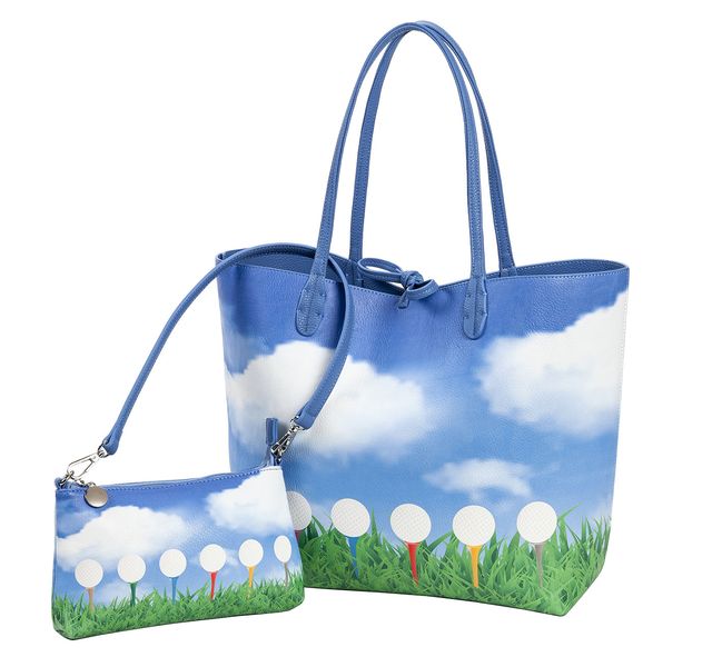 Robuste PVC-Allzwecktasche mit dem “zweiten Gesicht”: Oben offen, mit Schlaufenband zu verknoten. Eleganterseparater Clutch (24 x 4 x 15) mit Karabiner-Trageriemen 60 cm,Polka-Dot Innenfutter, seitliches Einsteck- und Reißverschlußfach.
